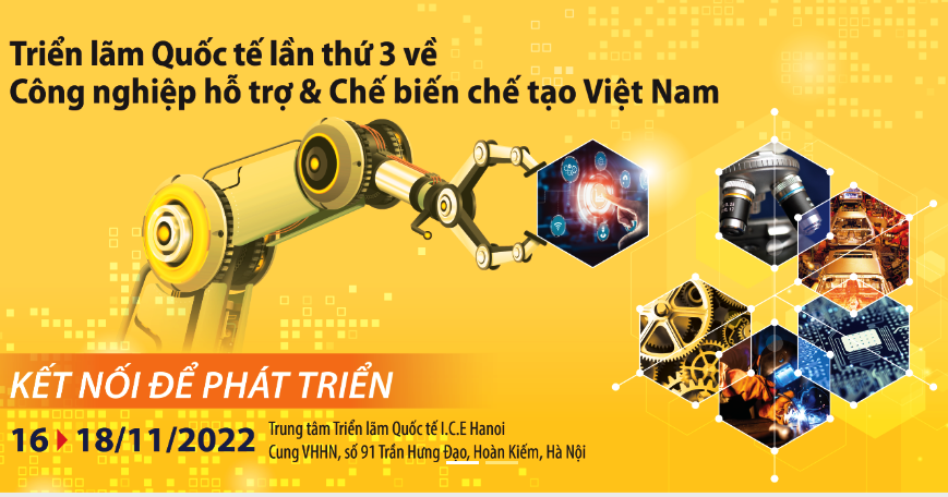 Từ ngày 16 – 18/11 tại Trung tâm Triển lãm Quốc tế ICE Hà Nội, Cục Công nghiệp (Bộ Công Thương) chủ trì, phối hợp cùng Công ty Quảng cáo và Hội chợ Triển lãm C.I.S Vietnam tổ chức triển lãm quốc tế lần thứ 3 về Công nghiệp hỗ trợ và Chế biến chế tạo Việt Nam – VIMEXPO 2022 với mục tiêu “Kết nối để phát triển”.